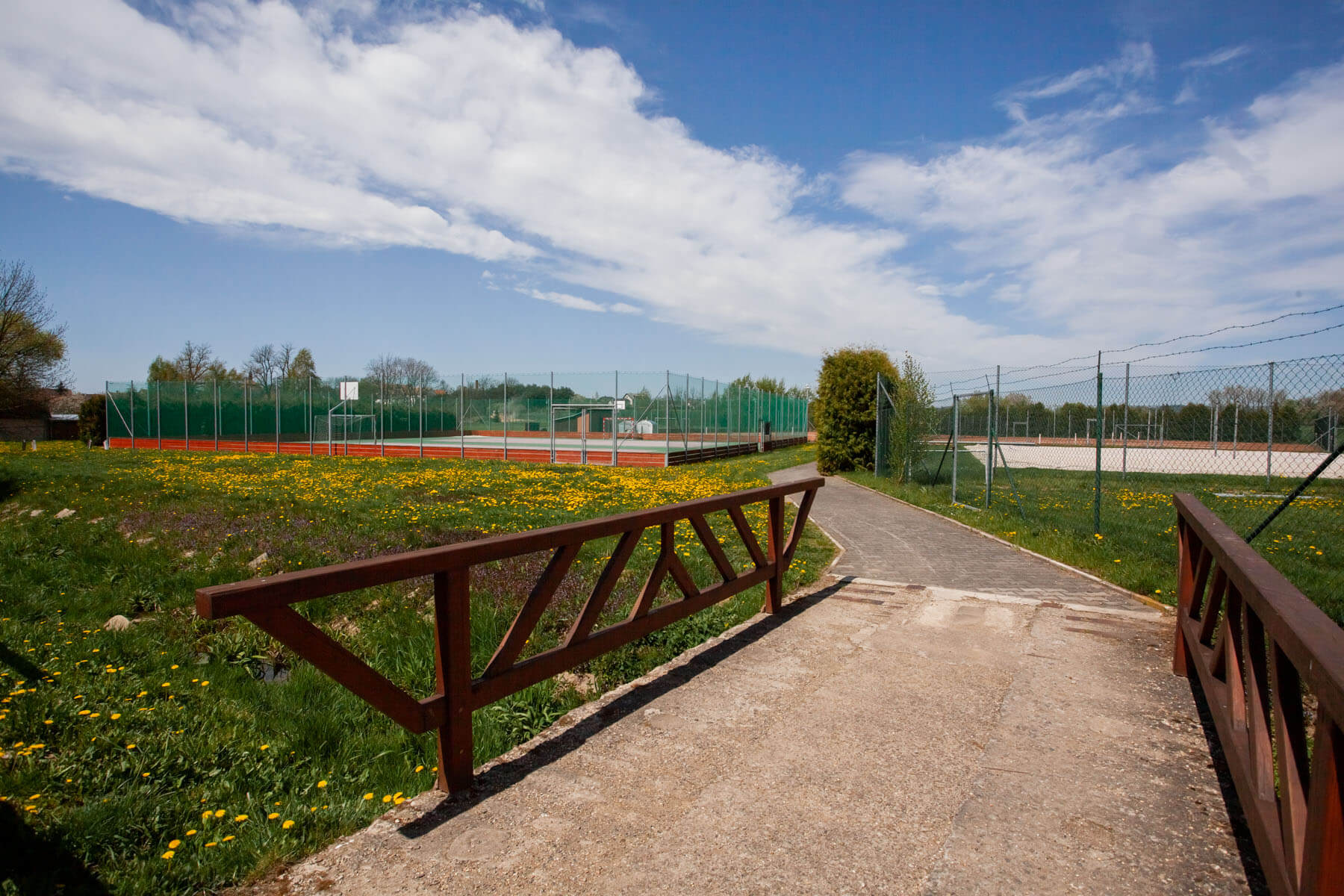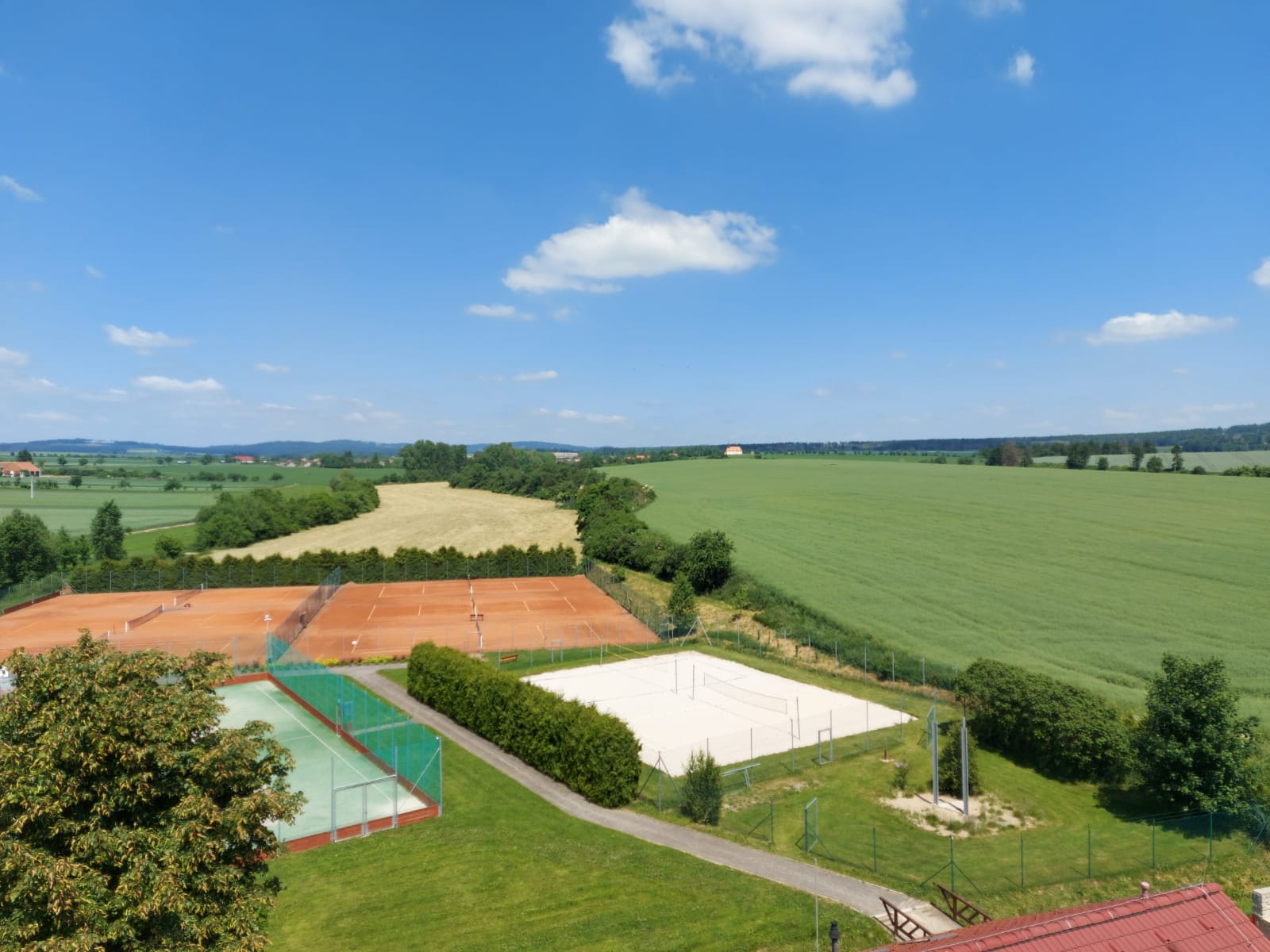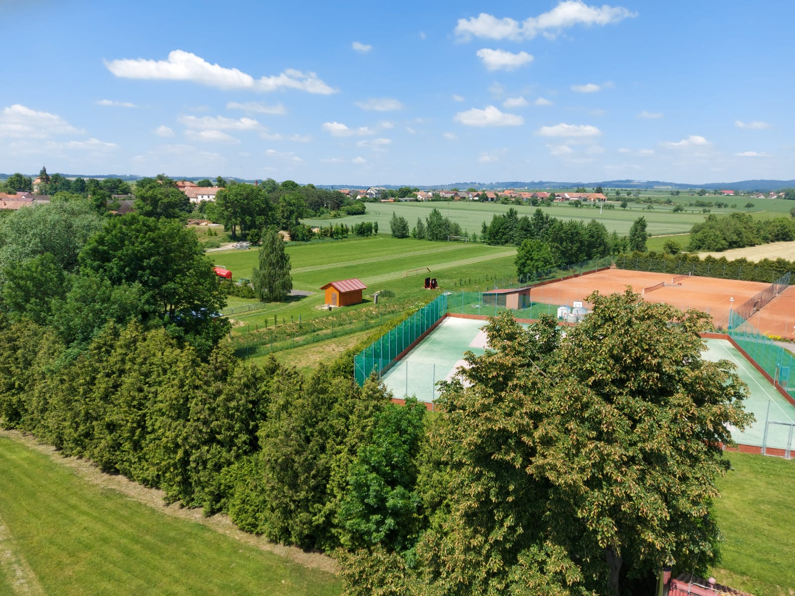 K dispozici jsou vám dvě fotbalová hřiště, šest antukových kurtů a dvě nově zrekonstruovaná víceúčelová hřiště šatnami. Pro děti je tu velké hřiště se spoustou skluzavek a prolézaček. Přímo v areálu je také možnost koupání ve vodní nádrži.