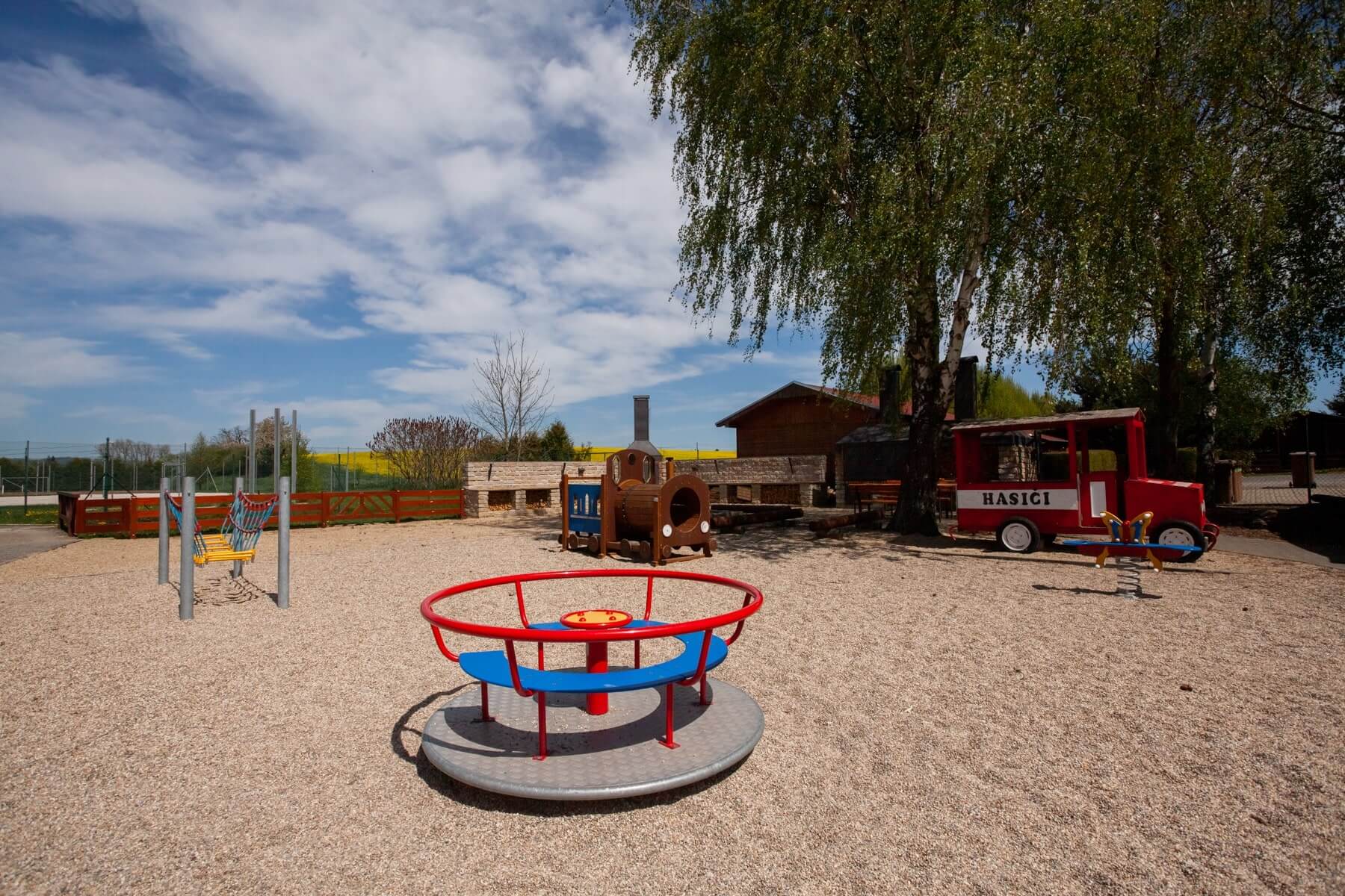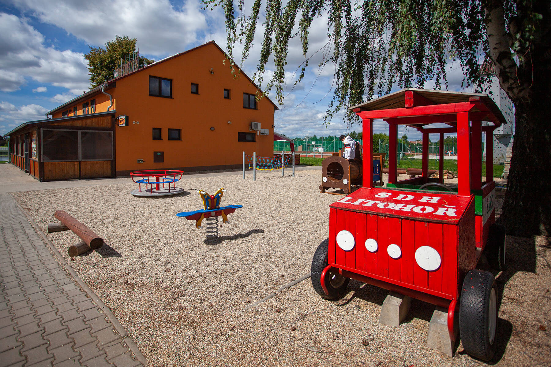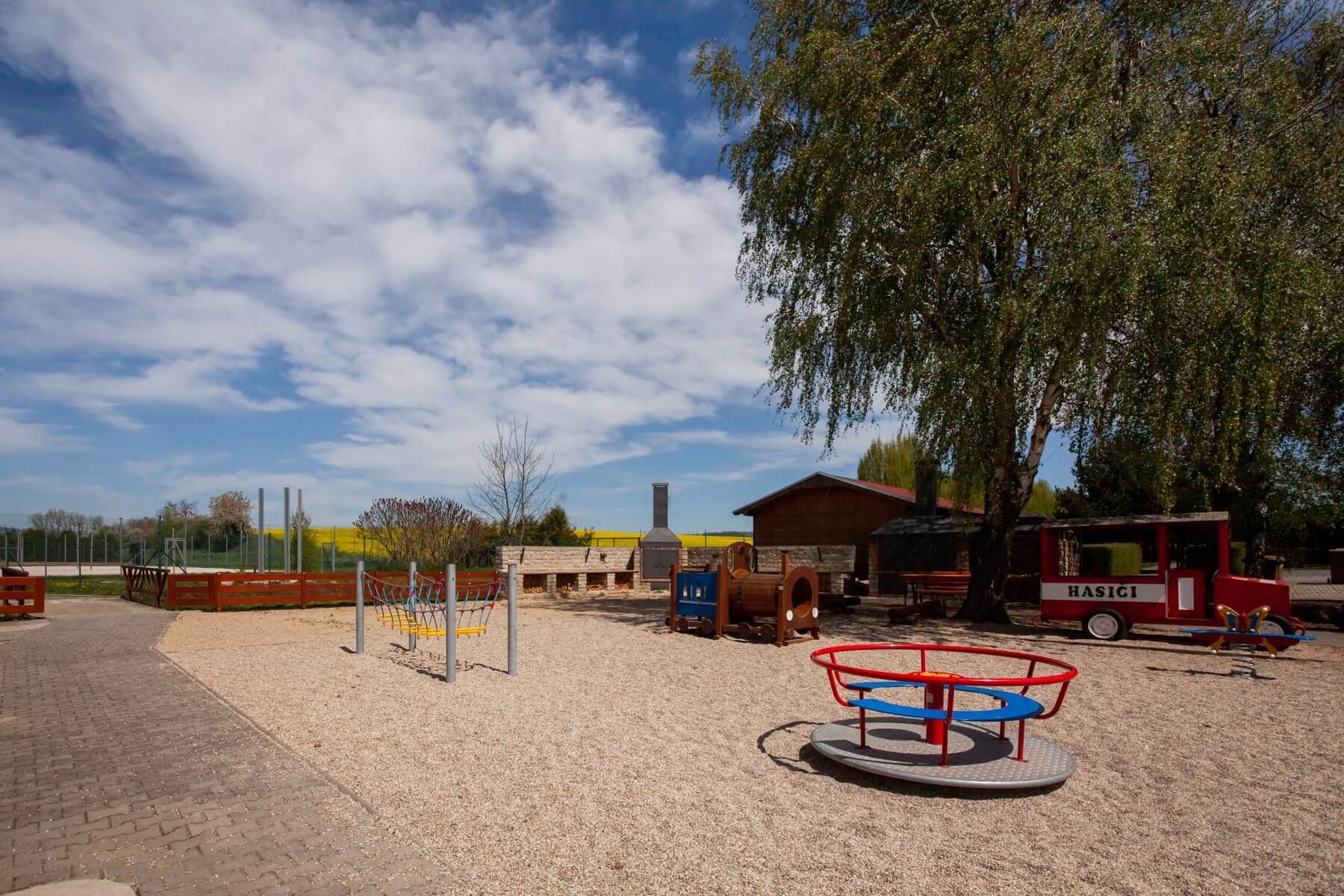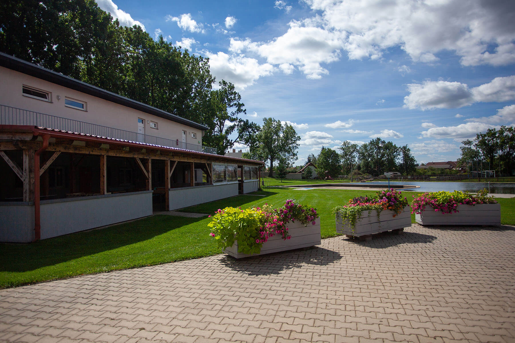 K dispozici jsou vám dvě fotbalová hřiště, šest antukových kurtů a dvě nově zrekonstruovaná víceúčelová hřiště šatnami. Pro děti je tu velké hřiště se spoustou skluzavek a prolézaček. Přímo v areálu je také možnost koupání ve vodní nádrži.